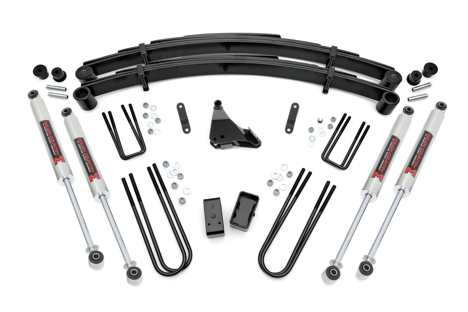 Give your 99-04 Ford Super Duty an impressive upgrade, front to back with Rough Country’s 4″ Ford Suspension Lift Kit! This easy-to-install lift kit raises the front of your vehicle to be equal height with the rear for a leveled, better-than-stock look that gives an improved ride height and more aggressive appearance. This kit features a set of front, lifted leaf springs allowing you gain additional ride height without sacrificing ride quality or performance. A set of sway bar drop brackets and track bar bracket are provided to keep everything at optimum angles for a factory-like ride, even after lifting. A set of Rough Country’s premium N3 shocks are also included. These fine tuned 10-stage variable high-pressure Nitrogen charged shocks offer a fantastic blend of off-road action and smooth highway ride quality. With a durable 18mm spring-loaded piston rod and faster-cooling 54mm shock body. Get the wheels you want! Rough Country’s 4″ 99-04 Ford Suspension Lift Kit comes with everything you need to fit up to a 35″ tire with proper wheel backspacing. Best of all, Rough Country’s 4″ Ford Suspension Lift Kit is backed by our Lifetime Replacement Warranty.