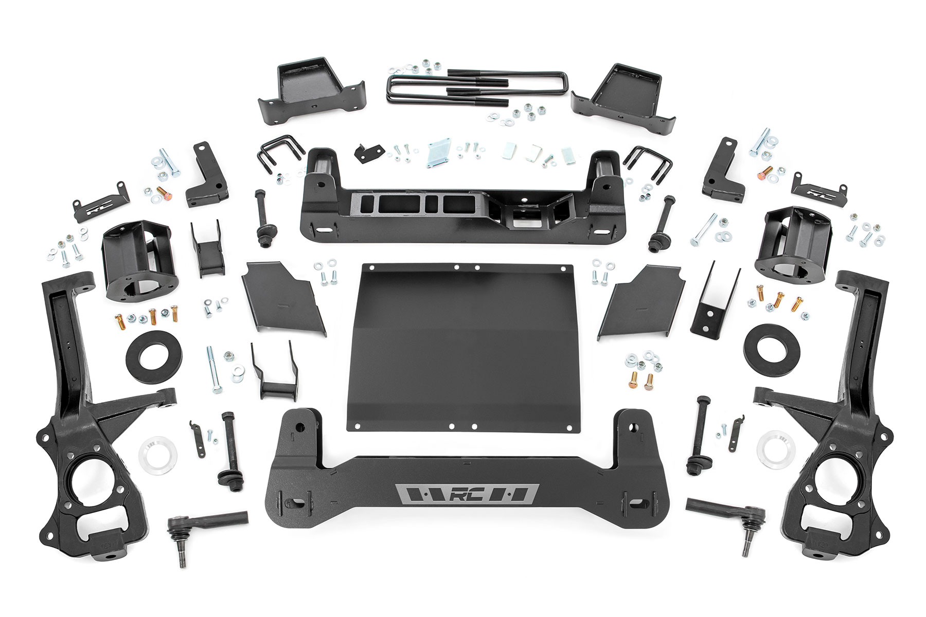 GMC’s 2019 Sierra 1500 features an impressive all-new design that’s built from the ground up, with aggressive angles and head-turning stylings that fit in beautifully when transformed with Rough Country’s 6in Suspension Lift. This kit lifts and levels your vehicle for a commanding stance and enough clearance to run 35×12.50 tires on 10in wide wheels. Rough Country has engineered this kit to provide optimal suspension geometry while retaining the factory ride quality, giving you enhanced off-road capabilities without sacrificing the handling and smooth ride that makes this truck so impressive. Rough Country’s 6in Suspension lift retains the stock track width, allowing for up to a 10in wide wheel with 4.5in backspacing. Each kit includes front and rear crossmembers and a skid plate for enhanced chassis strength as well as cast steel knuckles for incredible durability and performance. Includes Rough Country’s Lifetime Replacement Guarantee!
